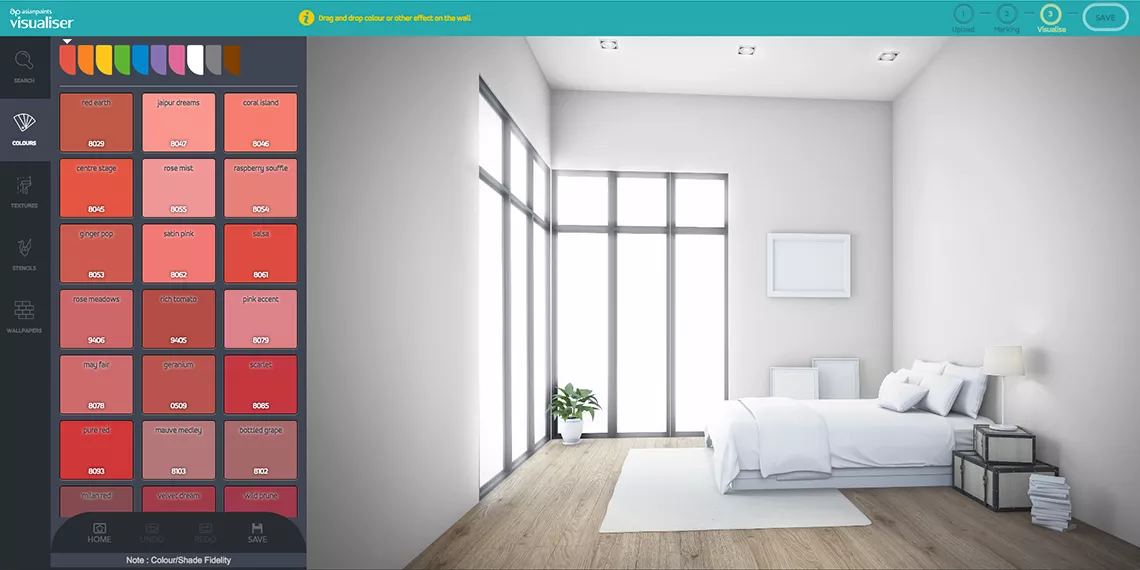 Colour Visualiser tool allows you to experiment with colours online before you even begin painting. You can pick and choose colours for your own room and has numerous images of both indoor and outdoor projects for you to try out.